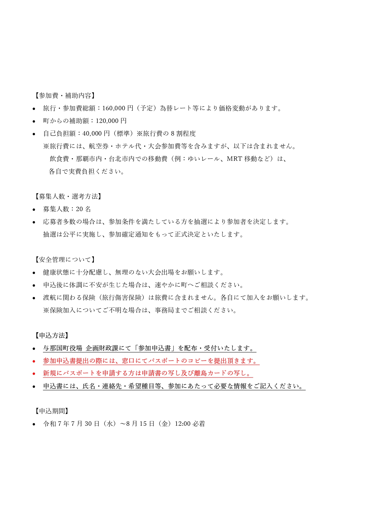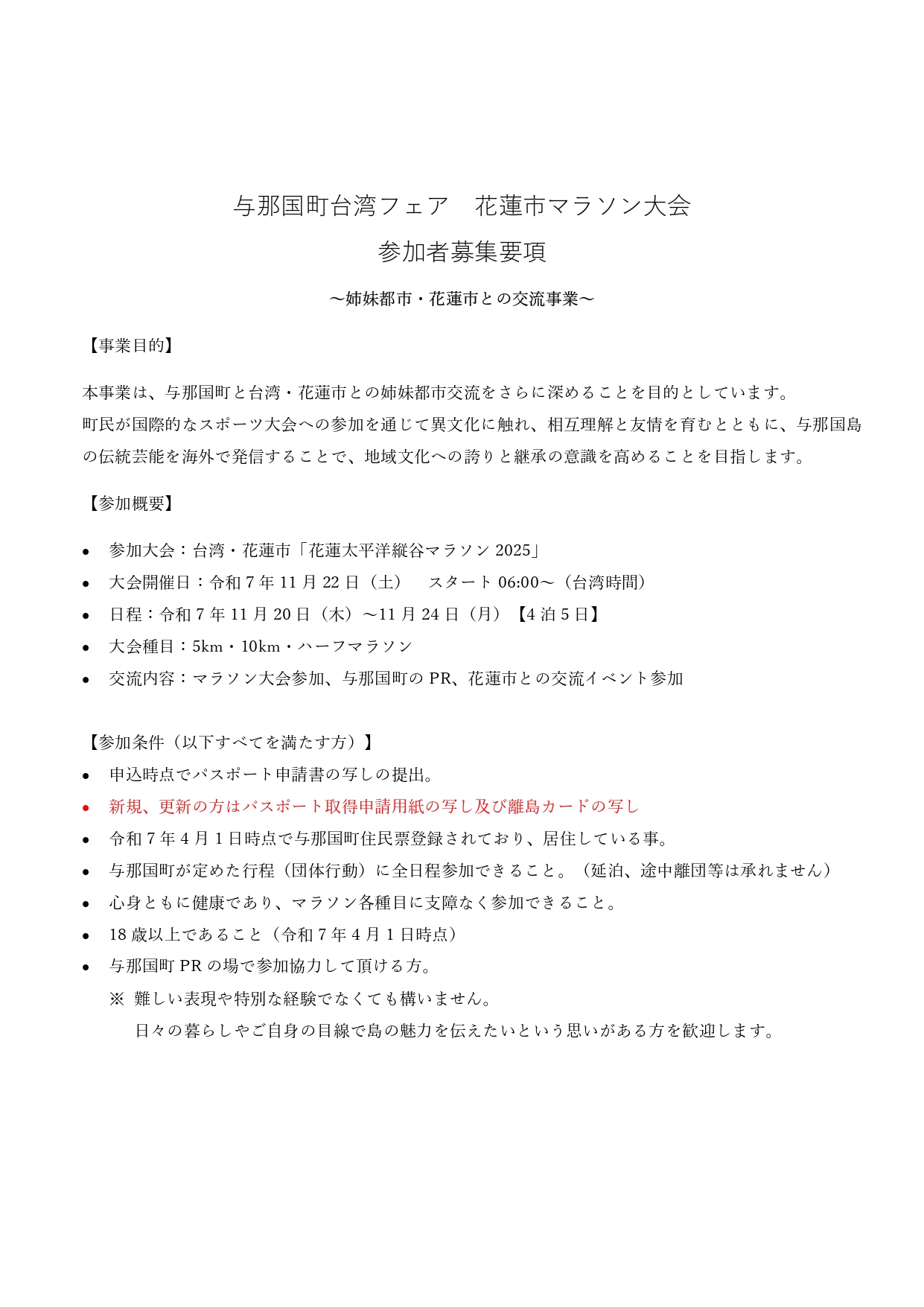 パスポートを現時点でお持ちでない方や、令和7年度より与那国町民となった方でも応募可能となりました。