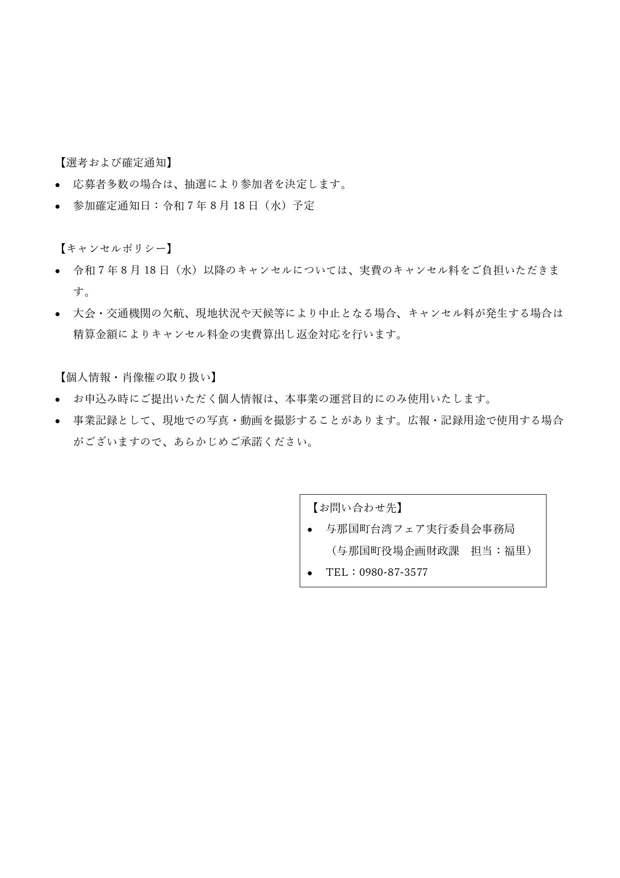 与那国町台湾フェア実行委員会からお知らせいたします。